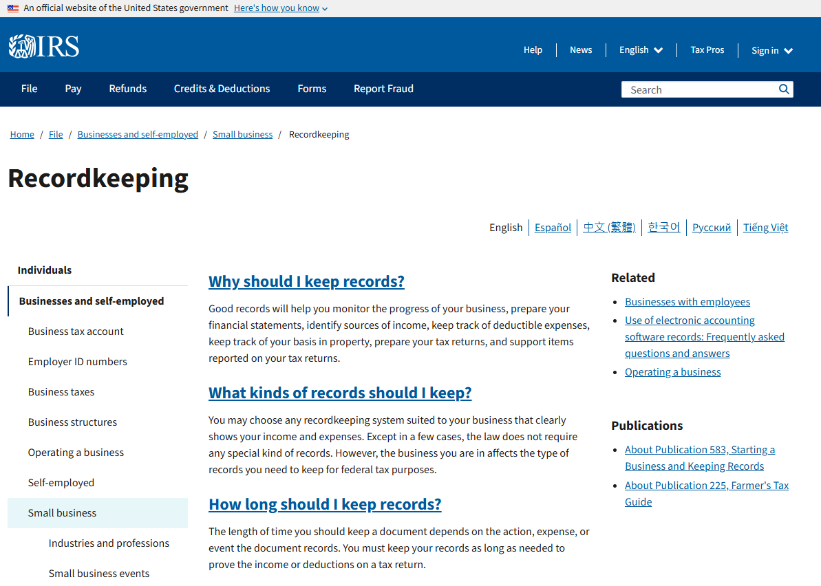 The official tax authority (IRS) requires that you keep track of your revenues and expenses, as well as purchases of machinery, vehicles, buildings (assets), and any associated debts (liabilities), in order to file an organized, clear, and transparent tax return.